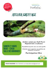 Atelier animé par Gaël Parot, pépiniériste à Lahonce. Possibilité de partir avec son arbre greffé. Vous pouvez amener vos greffons de pommiers et poiriers. Participation libre