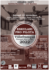 Suite à la finale de l’Eskulari Pro Pelota 2022, un repas sera organisé par le club Eskulari avec entrecôtes à la plancha, frites, fromage, vin compris, dessert, café avec animation